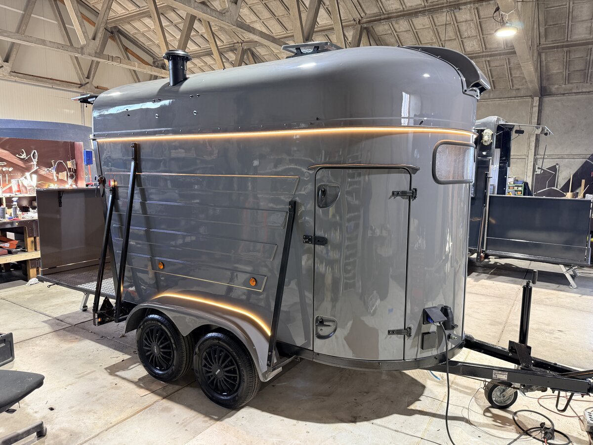 Ook deze retro paardentrailer hebben we omgebouwd tot mooie duurzame foodtruck met uitbouw voor extra ruimte.